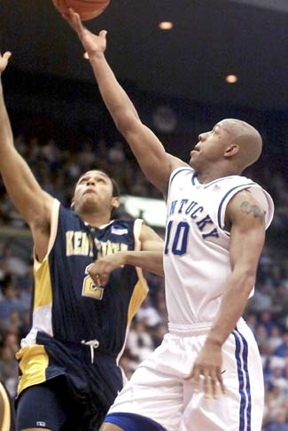 Kentucky was led by Keith Bogans and Marquis Estill, each with 19 points. The Cats also got double-figure scoring from Tayshaun Prince (17) and Cliff Hawkins (12) in a balanced effort.