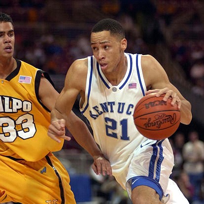 Tayshaun Prince (#21) drives past Valparaiso's Ali Berdiel (#33)
