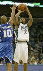 Tulane's Waitari Marsh (#3) shoots over Keith Bogans (#10)