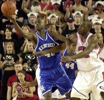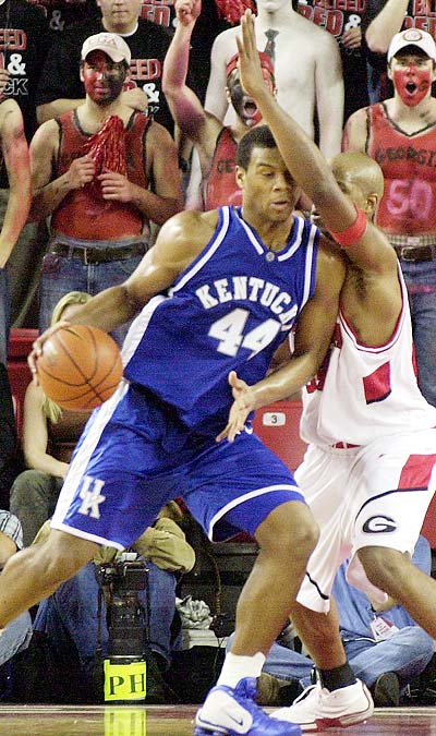 Chuck Hayes works against Georgia's Jarvis Hayes