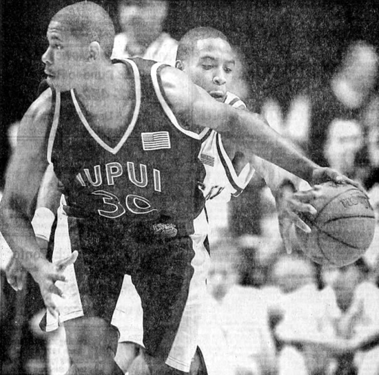 Cliff Hawkins tries to steal the ball from IUPUI's Brandon Cole