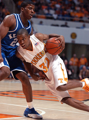 The closely called game allowed Tennessee to chip away at a 45-30 UK lead, finally taking the lead for the first time at 52-51 with 7:37 left and capping a 24-6 spurt to make it 54-51. UK answered by reclaiming the lead 61-58 with 3:53 left, but missed several chances to extend the lead.