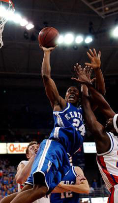 Florida nearly answered right back, but Anthony Roberson's drive wouldn't fall, UK rebounded and ran the clock down to 23.1 seconds before Roberson fouled Hawkins. Although Hawkins was shooting 74 percent from the line this season, he had made just 2-of-7 to that point and made one of two to push the lead to a perilous two at 67-65.