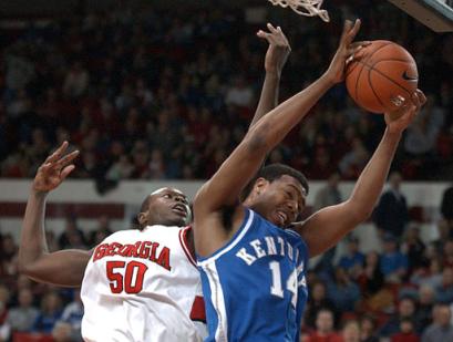 Erik Daniels (#14) grabs a rebound in front of UGa's Chris Daniels (#50)