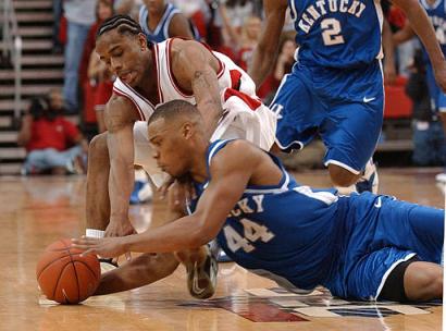 But UK still had its chances the final five minutes. Chuck Hayes made two free throws to close the deficit to 55-53, then nearly had a steal in the backcourt. After Steve Newman made one free throw, Hayes missed two free throws that would have made it a one-point game, then Antwain Barbour threw away an easy pass on the wing.