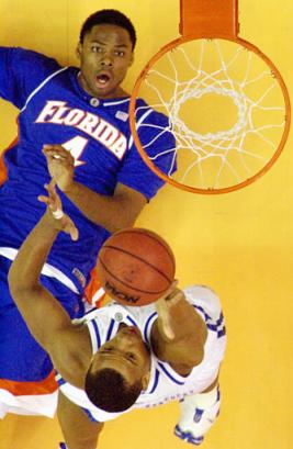 Florida's Adrian Moss can only lay back and watch as Chuck Hayes lays in a basket