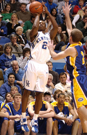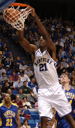Even through the spotty play, UK began the second half with stifling defense and a more aggressive offensive approach. The renewed effort showed as the Cats scored the first 20 points of the second half, turning the surprisingly close halftime score into a 49-23 rout. During the stretch, Kelenna Azubuike scored nine points, Patrick Sparks eight and Randolph Morris three. Twice Morris went up for dunks instead of going soft, as he had much of the season to date.