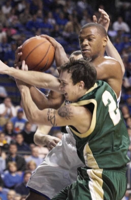 Chuck Hayes fends off William & Mary's Adam Dutton (#2)