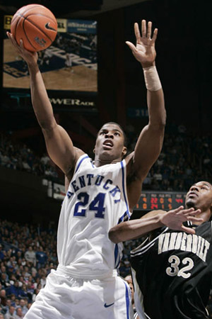 Kelenna Azubuike (#24) shoots past Vandy's Shan Foster (#32)