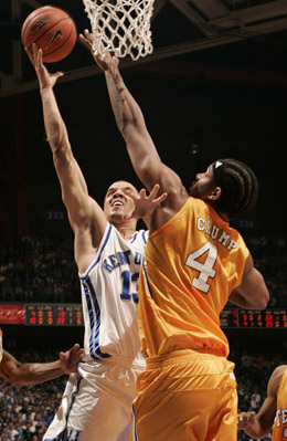 Joining Carrier's shooting party in the first half was another Kentucky native who showed four days time wasn't enough to cool him off. Patrick Sparks scored all 14 of his points in the first half, connecting on 4-of-5 from long range while staging a shooting duel with Tennessee's Chris Lofton.