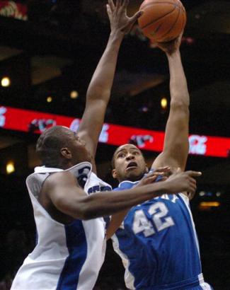 Playing without leading scorer and rebounder Rajon Rondo, UK was trying to erase the emotional toll remaining from the Carolina loss just three days before when Smith was left shaking his head at his team. As Rondo sat on the end of the bench in a tan suit, sophomore guard Joe Crawford returned from an injured knee and hip and Alleyne emerged from near oblivion to spark a team in desperate need of finding an identity.