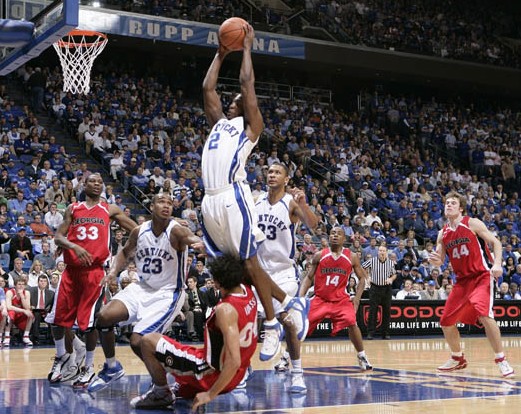 Maybe most important in the win was the Cats return to a stifling defense. Although Georgia missed numerous shots from point blank range, UK had a much more active pressure defense than anytime in the past few weeks. It showed in holding Georgia to 34.9 percent shooting for the game and by hounding leading scorer Levi Stukes into just 11 points on 4-of-14 shooting. Stukes was so flustered he made just 1-of-9 from long range after hitting at a 65 percent clip the last four games.