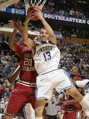 Still, this is UK and the SEC Tournament, so funny things happen. One day after erasing a seven-point deficit in the final five minutes against Alabama the Cats faced a six-point comeback attempt in three minutes. A Randolph Morris dunk off an inbound pass and a Joe Crawford free throw drew UK back within 61-58, then a missed Tre' Kelley jumper gave the Cats a chance to tie. Joe Crawford got a solid look from the top of the key off a screen, but the ball rattled in and out with 1:10 to play.