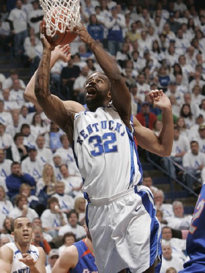 Randolph Morris (#33) works against UF's Chris Richard and Joakim Noah