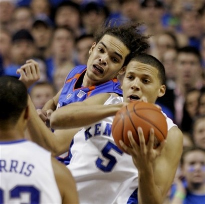 Bradley, an 85.5 percent free throw shooter coming into the game, had already missed four of his six attempts in the game and converted only one on this trip to put the lead at three again. Still, Florida gave UK one last opportunity to send the game into overtime when Al Horford's baseball pass past midcourt sailed over Walter Hodge's head and out of bounds, giving the ball to UK with 9.7 seconds on the clock.