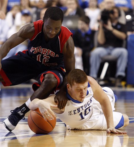 Jodie Meeks shoots around Florida Atlantic's Chris Watson