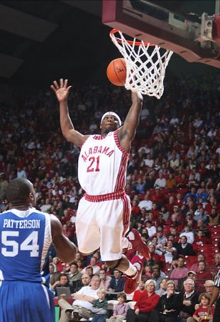 Alabama's Senario Hillman (#21) makes like Rajon Rondo with a stylish one-handed dunk