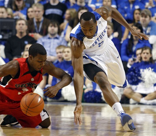 Georgia lit up the Cats' normally stingy defense, scoring 47 in the first half after totaling 45 in the entire game in the first meeting. When the Bulldogs scored two more quick buckets out of halftime, UK coach Billy Gillispie took out the bulk of his lineup (he left Michael Porter) and replaced them with Darius Miller, Landon Sloan, Josh Harrellson and Kevin Galloway.