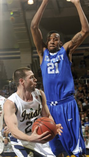 The first encompassed all of the issues the Cats have faced this season, from poor three-point shooting defense, careless turnovers and long stretches where they just could not put the ball in the basket. In one particularly brutal sequence, Kevin Galloway threw a pass to a reporter on press row as Jodie Meeks cut, resulting in a Jonathan Peoples three on the other end. Two possessions later Perry Stevenson had a pass go off his face, leading to a triple for Ryan Ayers on the other end. The very next time down the floor Galloway turned it over again and Ayers cashed another bomb to give the Irish a 26-18 lead.