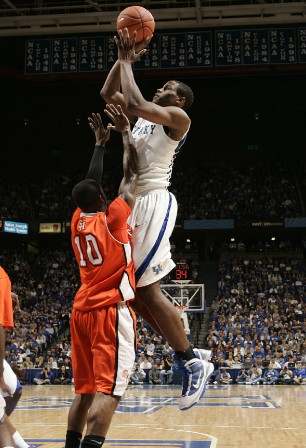 UK relied almost solely on its starting five. DeMarcus Cousins' 27 points led a scoring attack that saw the starters score all 102 of the Cats' points, while John Wall added 21, Patrick Patterson 20 and Eric Bledsoe 19. Sam Houston State had no answer for Cousins' size from the opening tip as the 6-foot-11 freshman added 18 rebounds to go with his point total. It marked the third time in as many games a freshman led UK in scoring.
