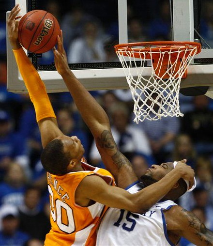 Tennessee's Wayne Chism and UK's Daniel Orton were T'd up with 8:31 to go in the middle of the Cats' game-clinching run.