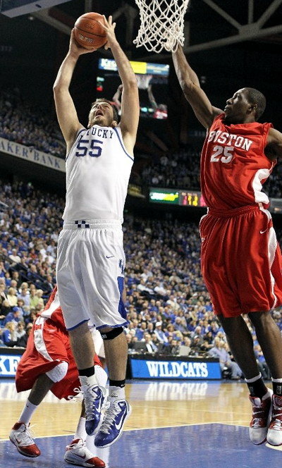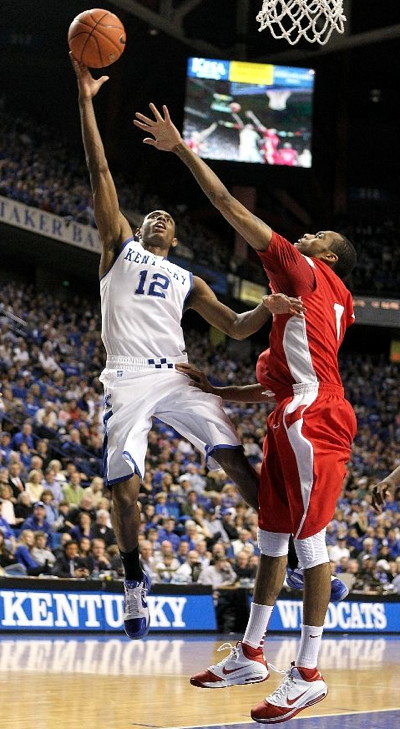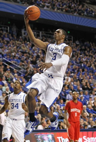 Brandon Knight (#12) drives against Boston University's Darryl Partin