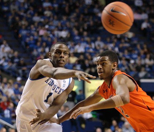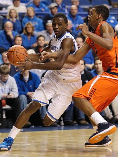 Terrence Jones (#3) shoots over Earnest Ross en route to a freshman single-game scoring record 35 points (including a single-game scoring record coming off the bench)