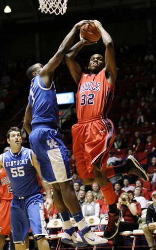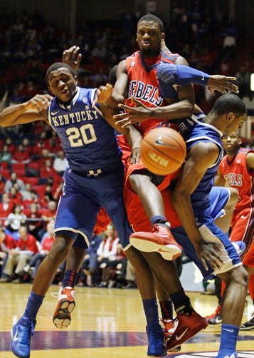 Brandon Knight drives by Ole Miss guard Chris Warren