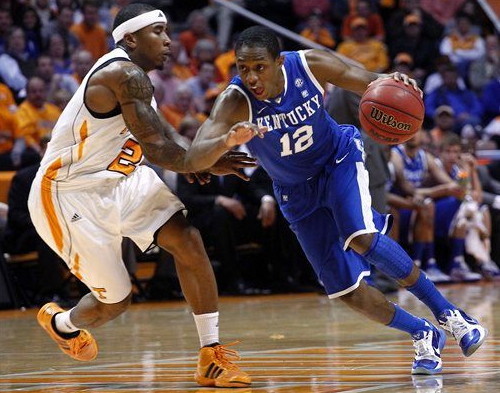 Brandon Knight (#12) drives past Tennessee guard Melvin Goins (#2)