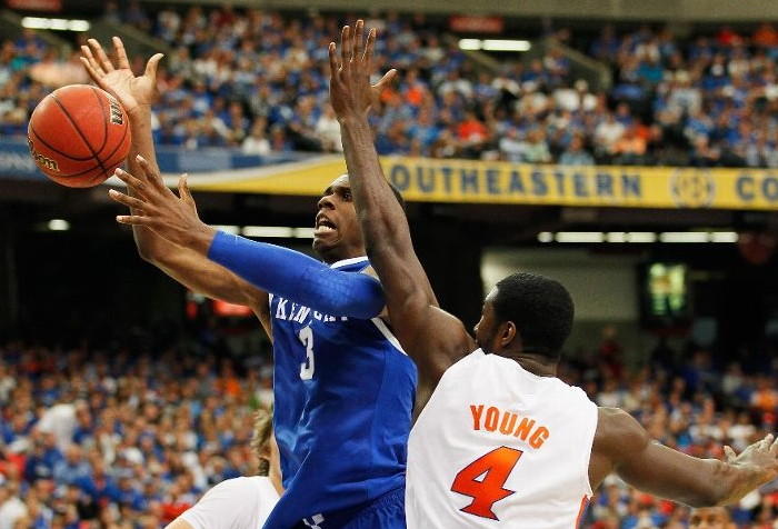 SEC Tournament MVP Darius Miller (#1) shoots over Vernon Macklin