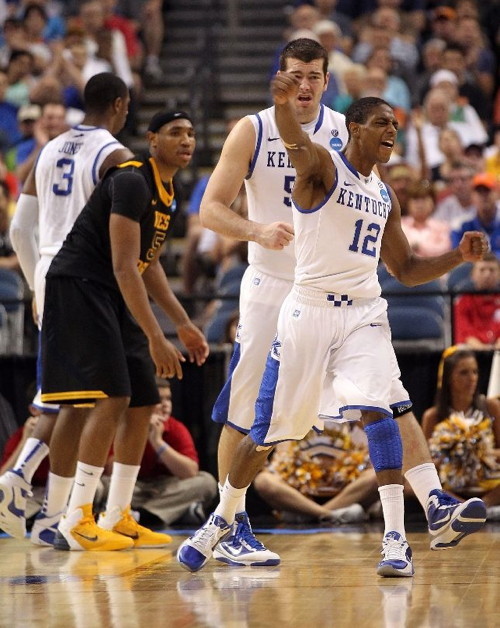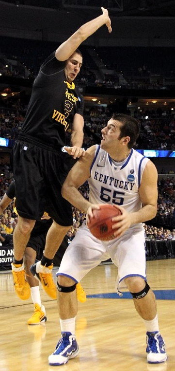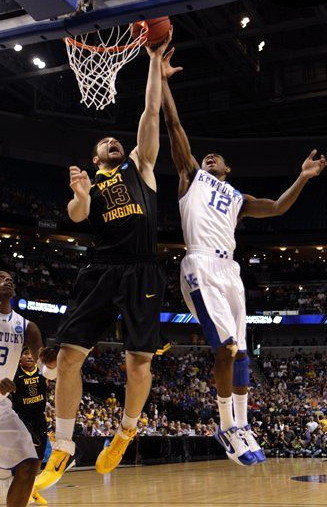 Brandon Knight (#12) defends against WVU's Deniz Kilicli (#13)