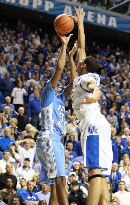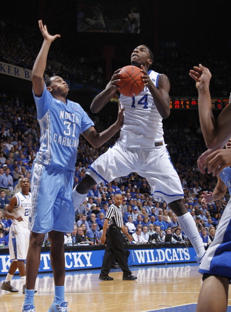 Michael Kidd-Gilchrist (#14) goes up against UNC's John Henson (#31)