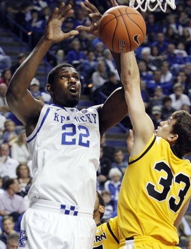 Alex Poythress (#22) loses the ball in front of NKU's Anthony Monaco (#33)