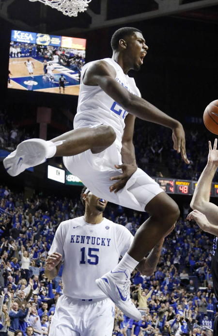 Alex Poythress reacts after a dunk