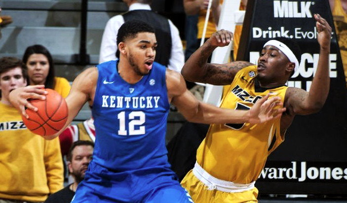 Karl Towns (#12) works against Missouri's D'Angelo Allen