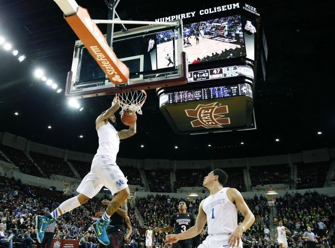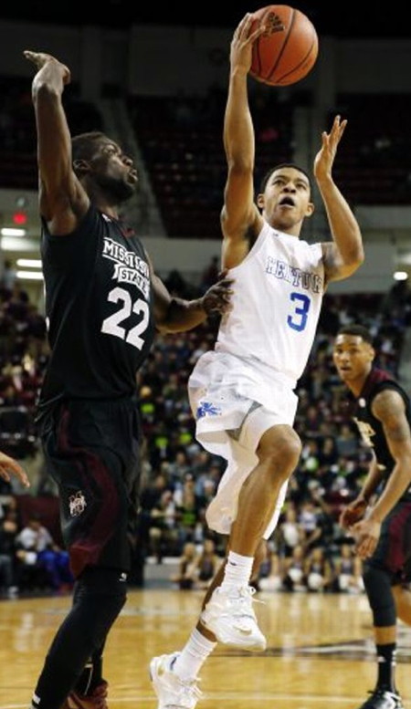 Tyler Ulis (#3) drives against Mississippi State's Fallou Ndoye (#22)