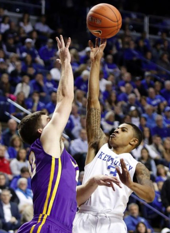 Tyler Ulis (#3) shoots a floater over Albany's Greig Stire