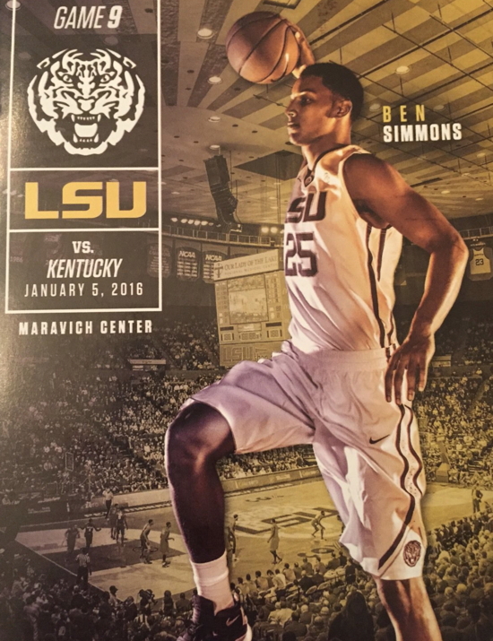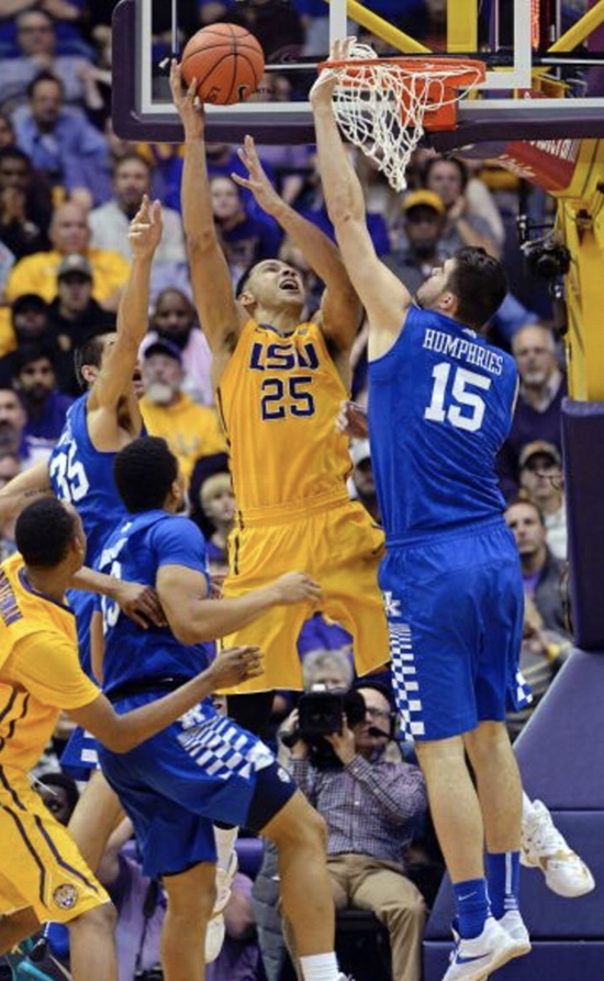 LSU freshman Ben Simmons (#25) scores inside against Isaac Humphries (#15)