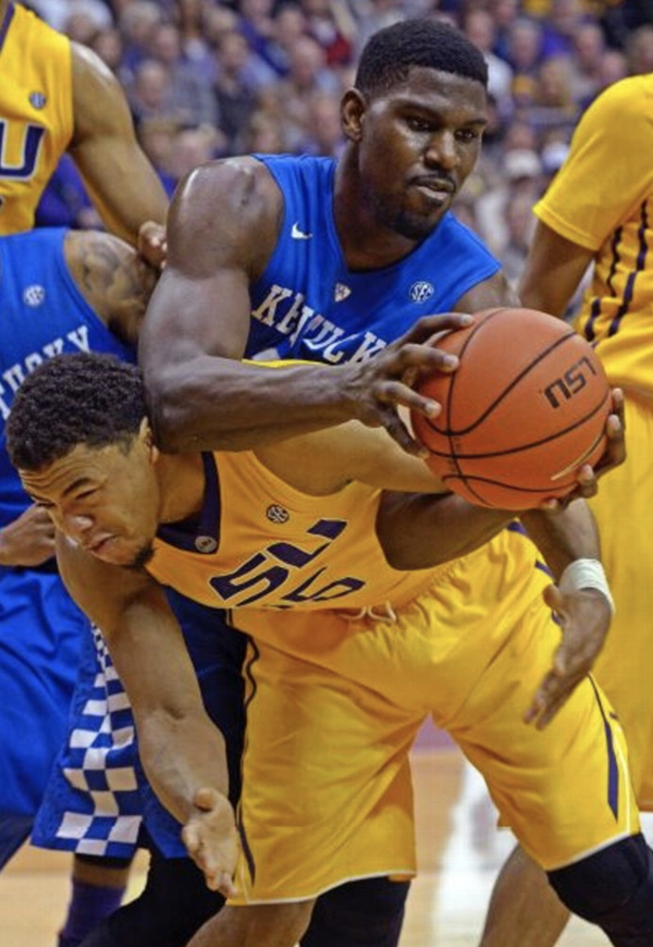 Alex Poythress grabs the ball over LSU's Jalyn Patterson