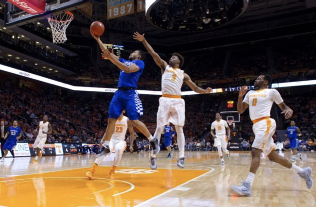 Isaiah Briscoe scores ahead of UT's Robert Hubbs III (#3)