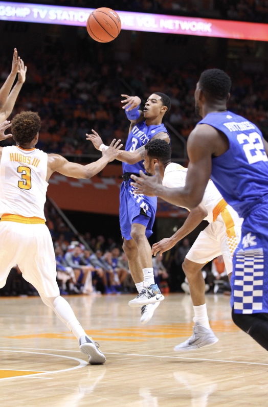 Tyler Ulis (#3) looks to pass to Alex Poythress (#22)