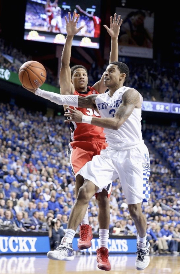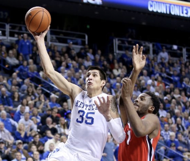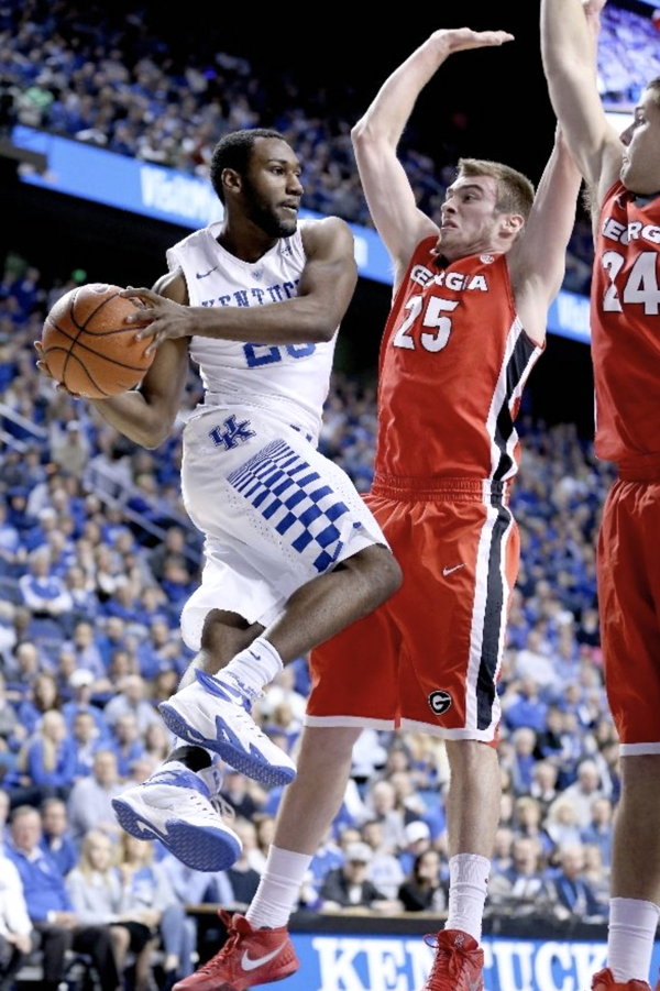 Derek Willis (#35) extends past Georgia's Yante Maten (#1) for a dunk
