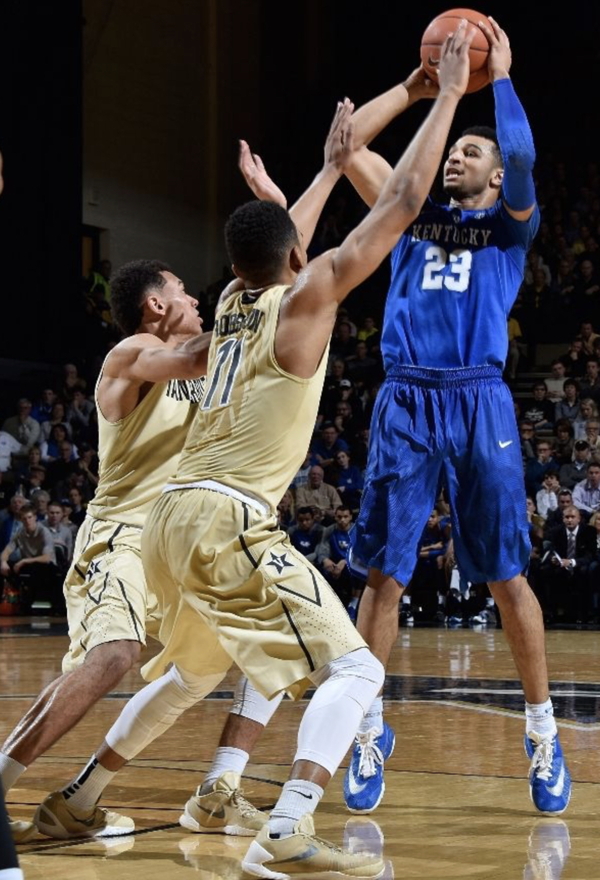 Ballet on the court, Tyler Ulis (#3) drives by Vanderbilt's Wade Baldwin