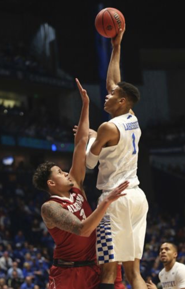 Skal Labissiere (#1) shoots over Alabama's Michael Kessens