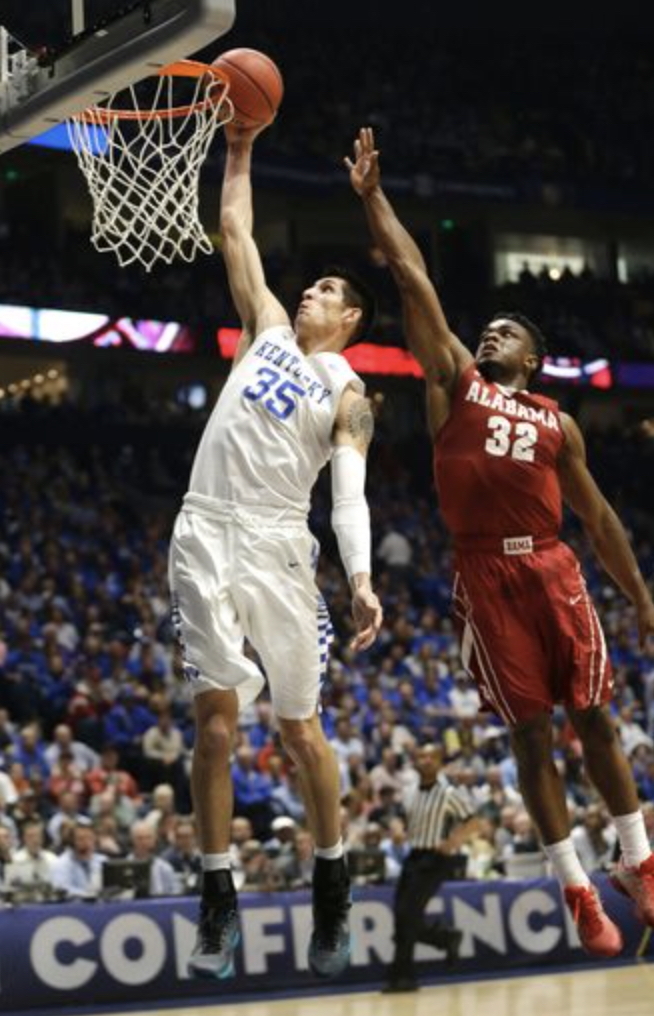 Derek Willis (#35) tries to dunk ahead of Alabama's Retin Obasohan