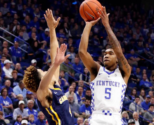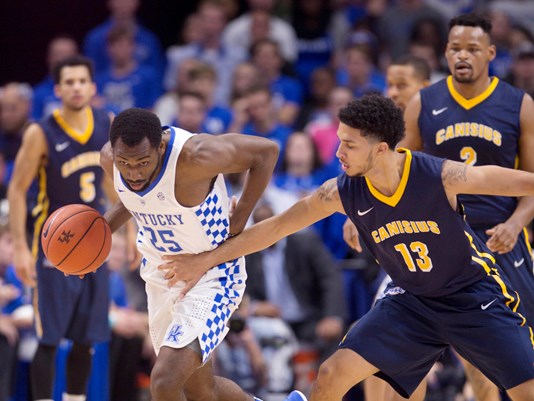 Malik Monk (#5) shoots over Canisius' Kiefer Douse