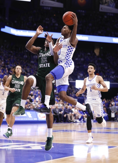 Malik Monk (#5) drives past Cleveland State's Daniel Levitt