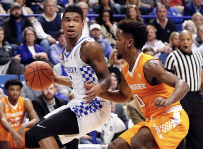 Malik Monk looks to drive around UT's Jordan Bone