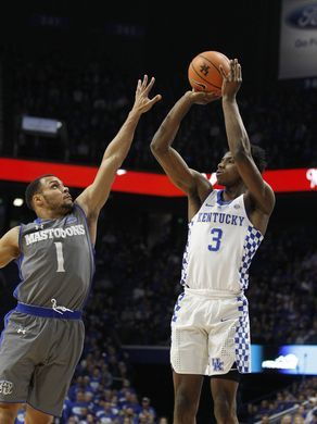 Hamidou Diallo (#3) shoots over Bryson Scott (#1)