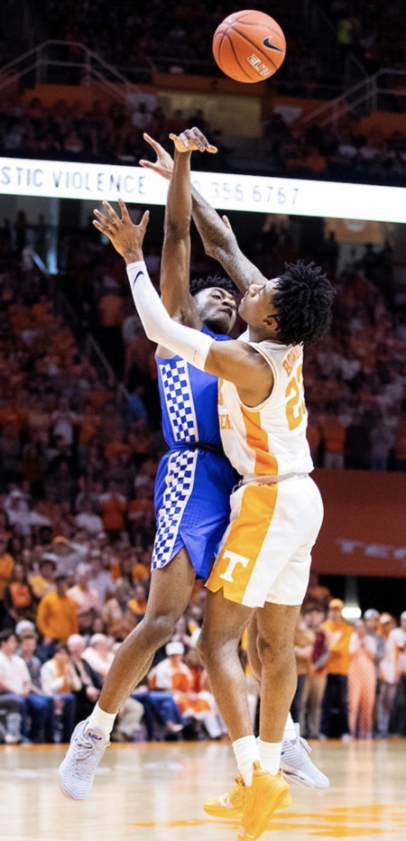 Immanuel Quickley and Tennessee's Jordan Bowden (#23) get tangled